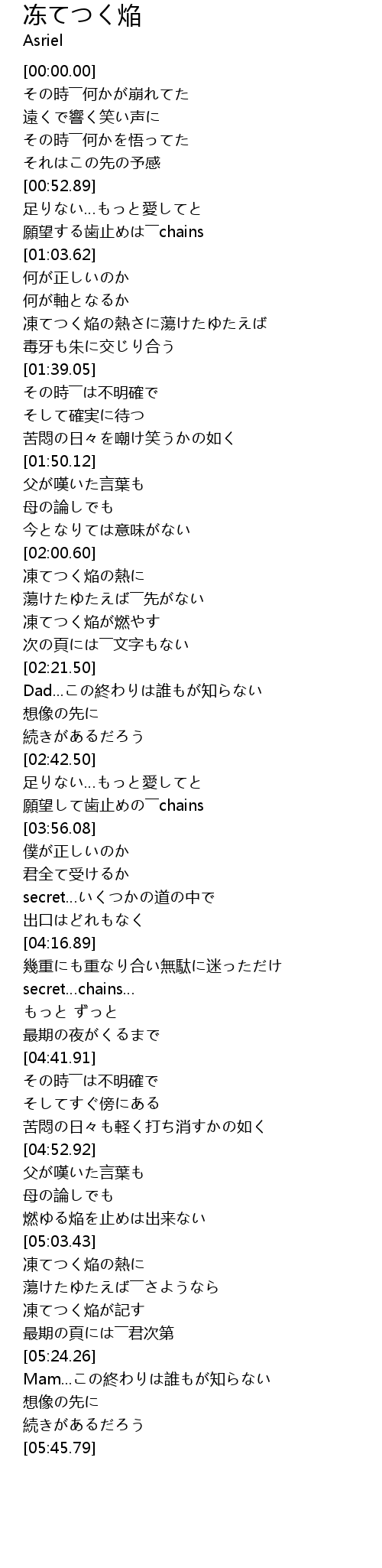 | [05:13.89] | 凍てつく焔が記す |