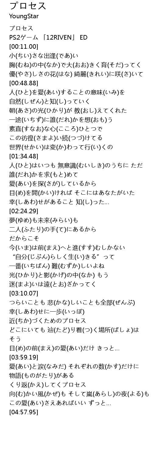 | [03:22.89] | 幸(しあわ)せに一歩(いっぽ) 近(ちか)づくためのプロセス |