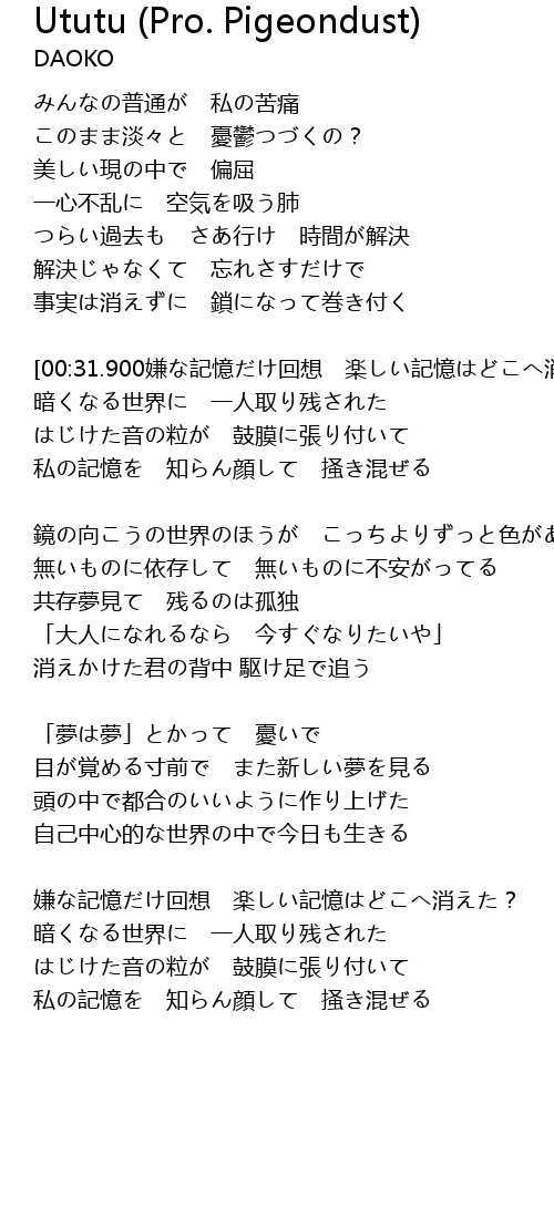| [00:13.200] | このまま淡々と 憂鬱つづくの? |