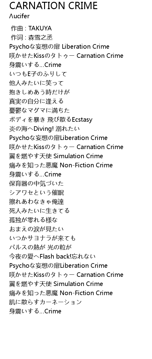 | [02:52.34] | 咲かせたKissのタトゥー Carnation Crime |