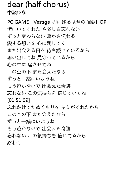 | [00:00.00] | PC GAME「Vestige-刃に残るは君の面影」OP |
