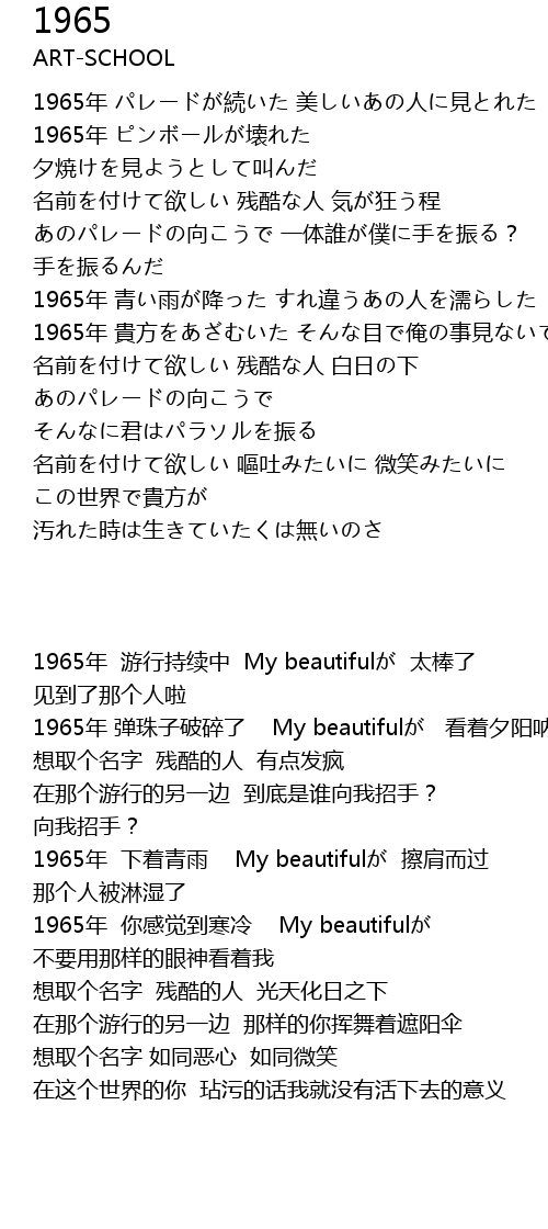 | [00:37.90] | 1965年 ピンボールが壊れた 夕焼けを見ようとして叫んだ |