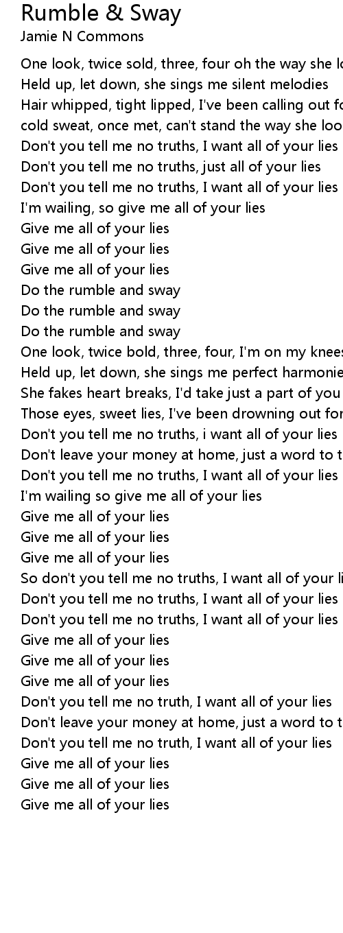 Don't you tell me no truths, i want all of your lies |