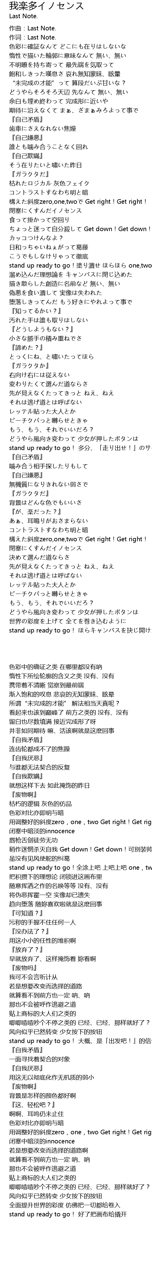 | [00:00.00] | 作词:Last Note. |