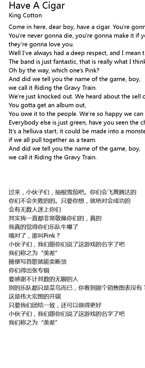 Come in here, dear boy, have a cigar. You're gonna go far, fly high, |