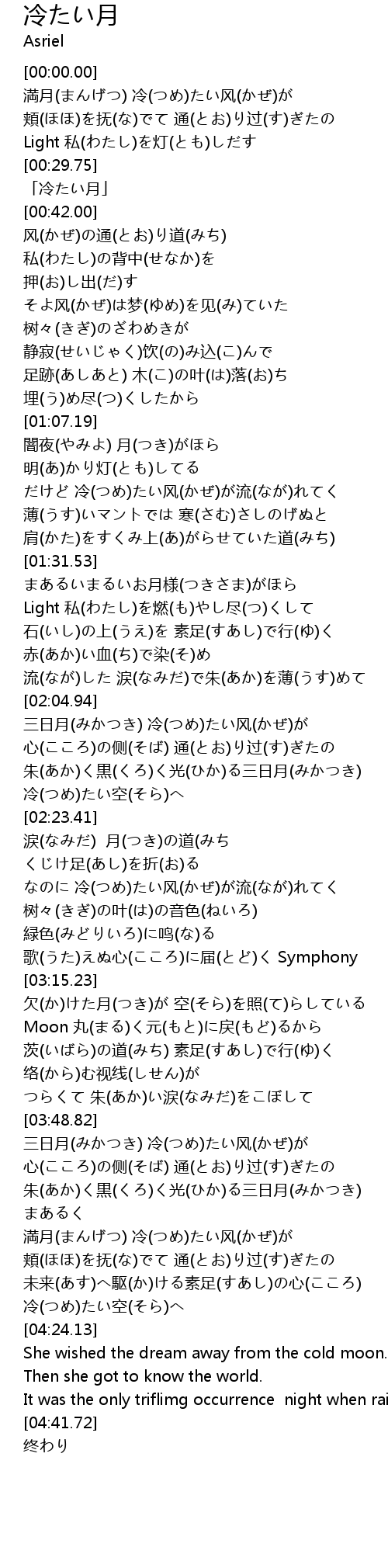 | [03:49.01] | 三日月(みかつき) 冷(つめ)たい风(かぜ)が |