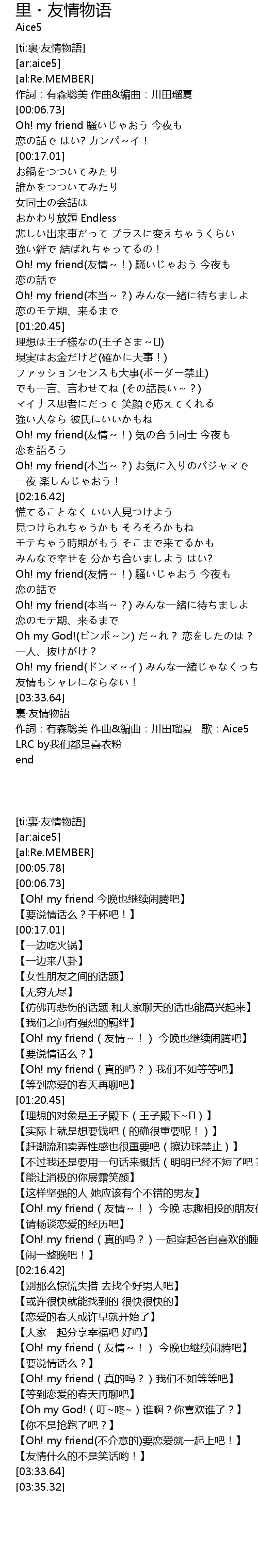 | [03:00.76] | Oh! my friend(本当~?) みんな一緒に待ちましよ |