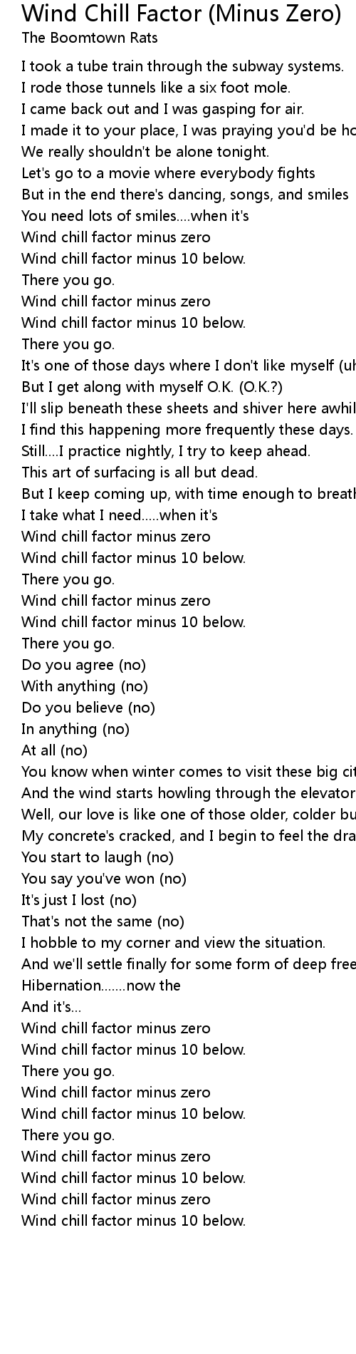 Wind chill factor minus zero |