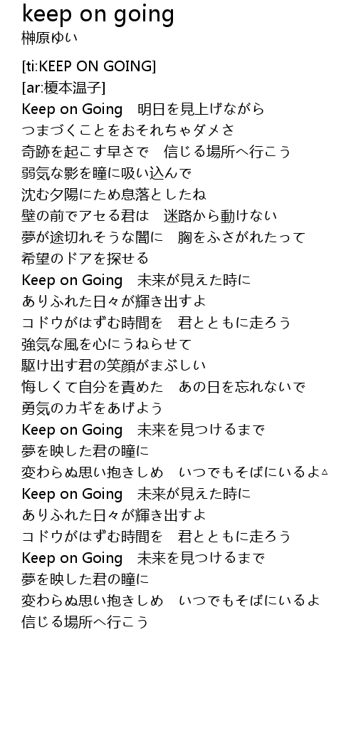 | [00:12.123] | Keep on Going 明日を見上げながら |