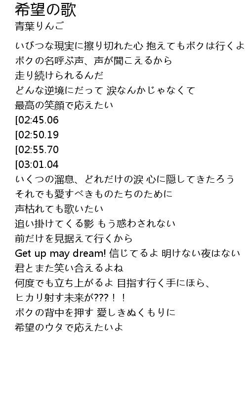 | [02:38.32] | 希望のウタで応えたいよ |