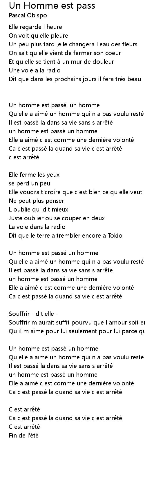 | Song | Un Homme est pass |