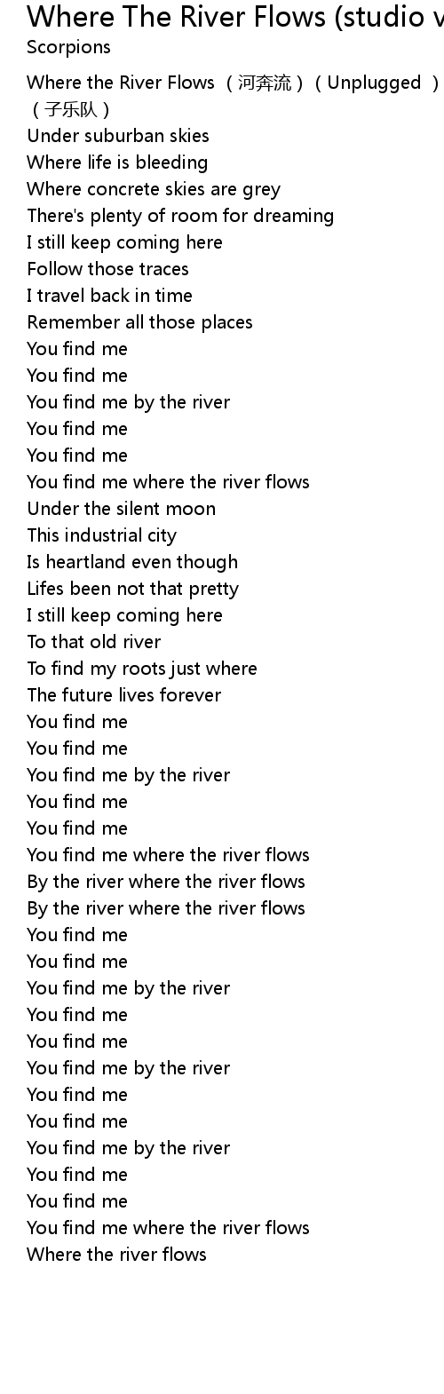 | [00:00.00] | Where the River Flows he ben liu Unplugged Scorpions zi yue dui |