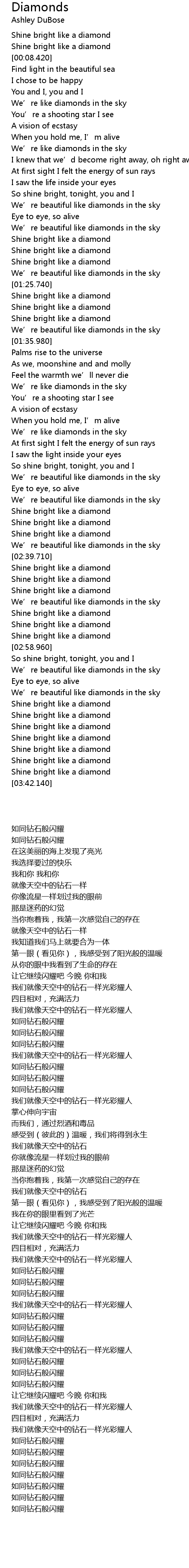 | [03:17.820] | We' re beautiful like diamonds in the sky |