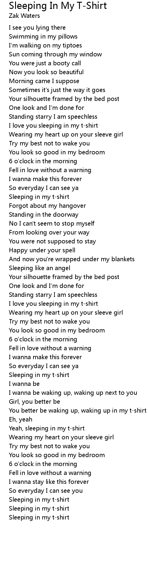 Yeah, sleeping in my t-shirt |