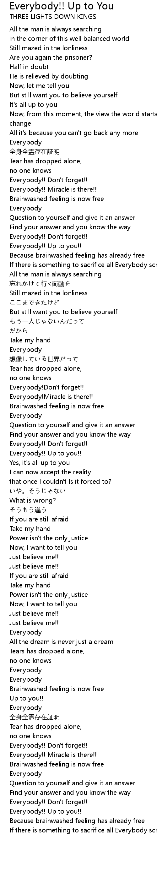 | Song | Everybody!! Up to You |