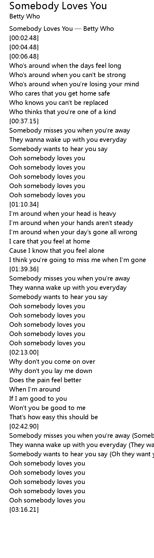 | [00:00.48] | Somebody Loves You Betty Who |