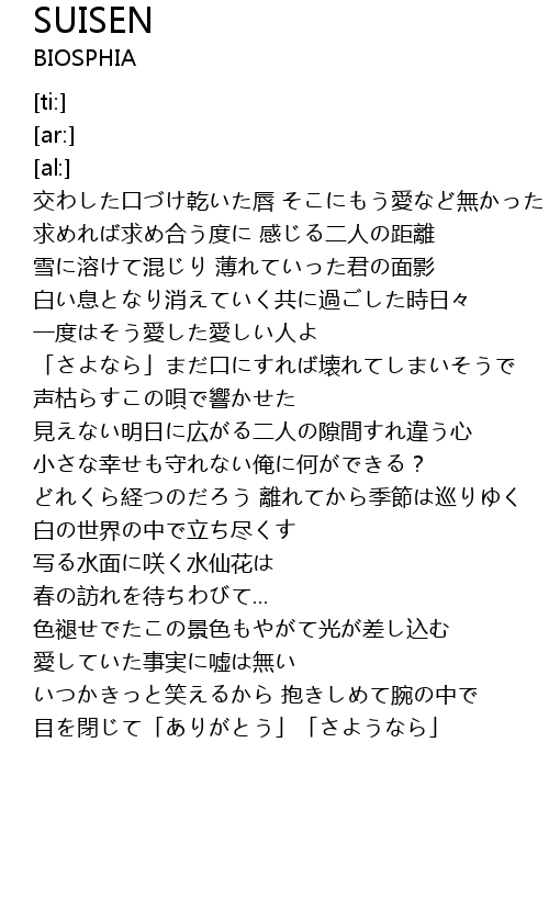 | [04:17.38] | 目を閉じて「ありがとう」「さようなら」 |