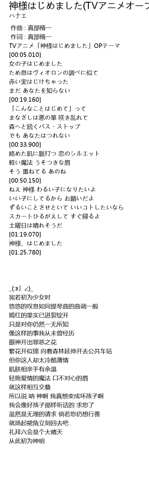 | [00:04.270] | TVアニメ「神様はじめました」OPテーマ |