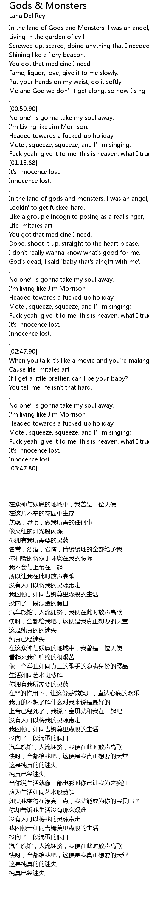 | [00:09.73] | In the land of Gods and Monsters, I was an angel, |