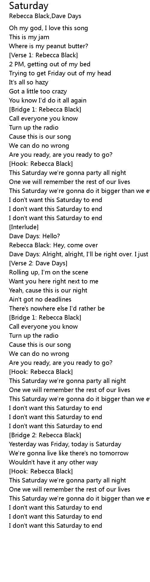 | [Hook: Rebecca Black] | |