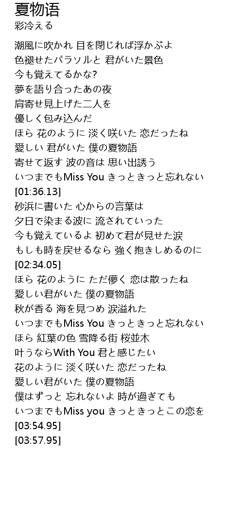 | [03:36.53] | 愛しい君がいた 僕の夏物語 |