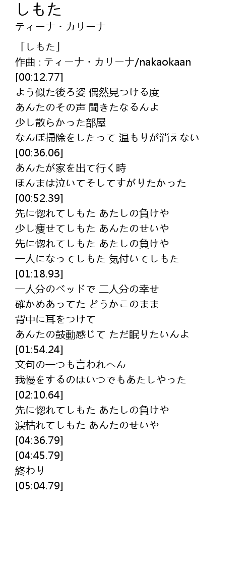 | [02:17.22] | 涙枯れてしもた あんたのせいや |