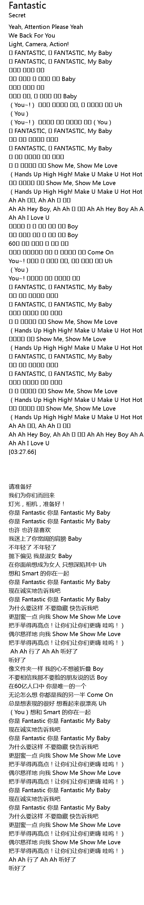 | [02:41.00] | 넌 FANTASTIC, 넌 FANTASTIC, My Baby |