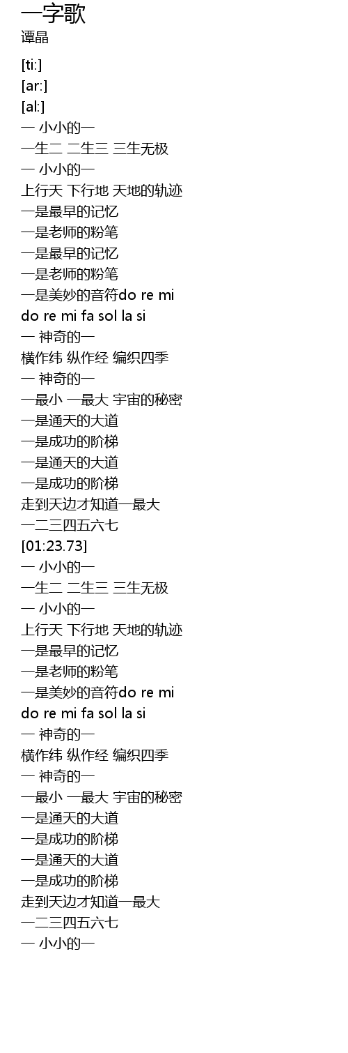 | [01:29.14] | yi sheng er er sheng san san sheng wu ji |
