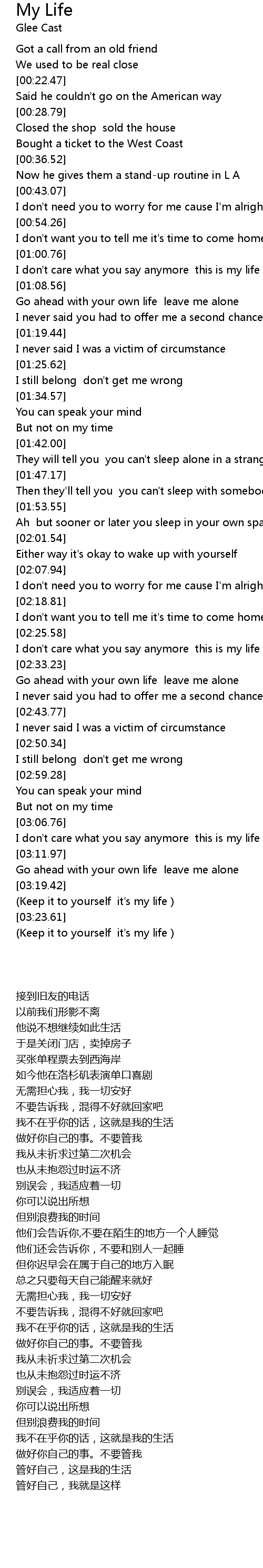 (Keep it to yourself it's my life ) |