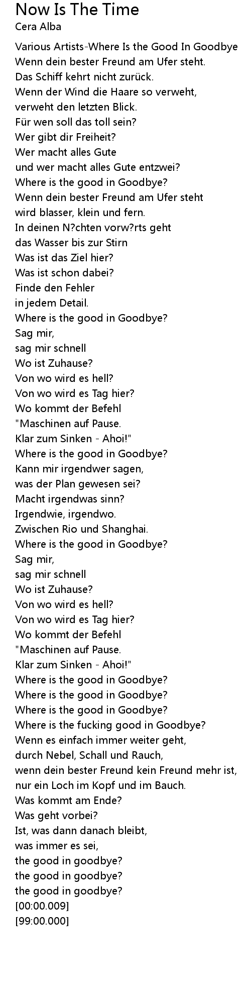 | [03:03.46] | Where is the fucking good in Goodbye? |
