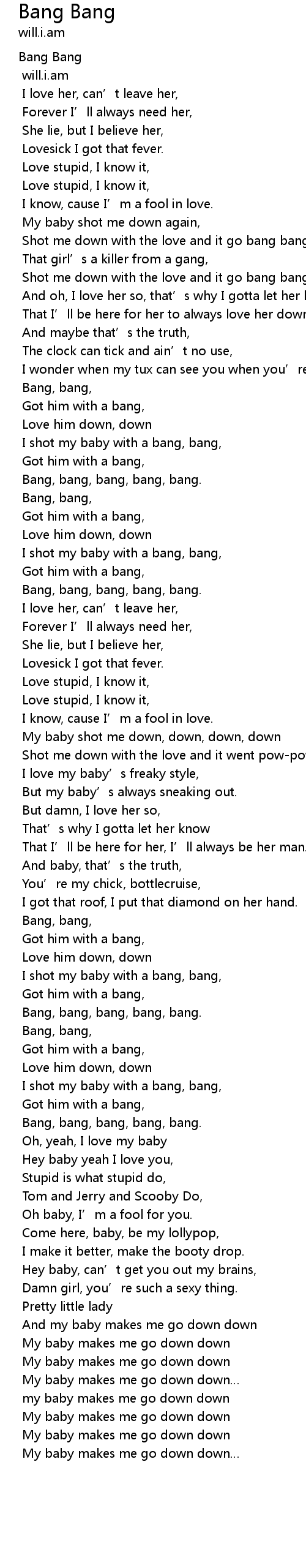 | I shot my baby with a bang, bang, | |