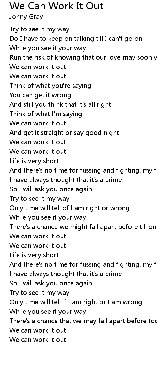 We can work it out |
