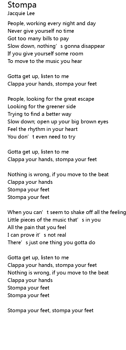 | Stompa your feet, stompa your feet |