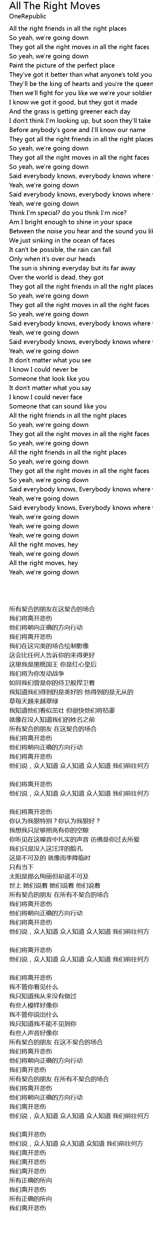 All The Right Moves Lyrics