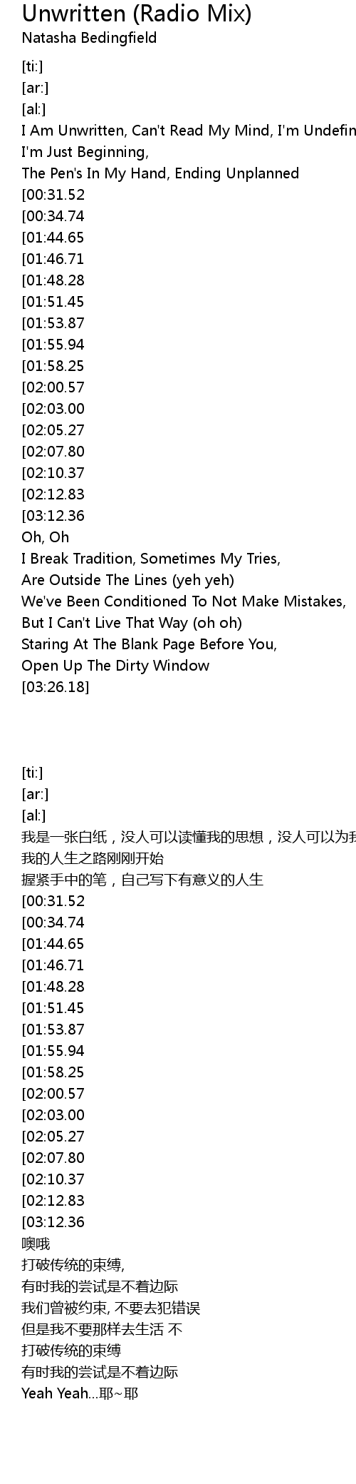 I Am Unwritten, Can't Read My Mind, I'm Undefined |