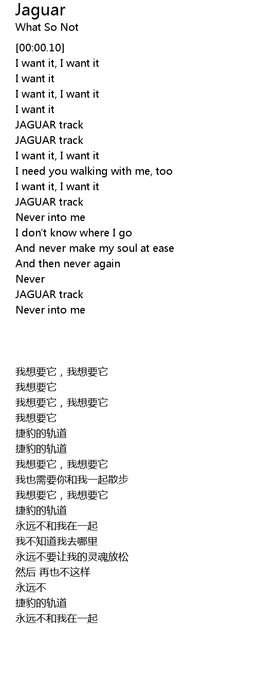 | [00:00.71] | I want it, I want it |