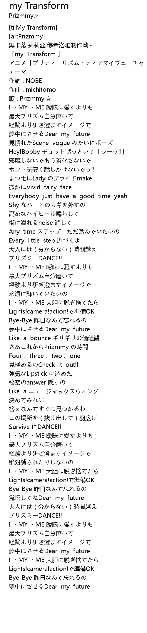| [00:03.584] | 歌∶Prizmmy ☆ |