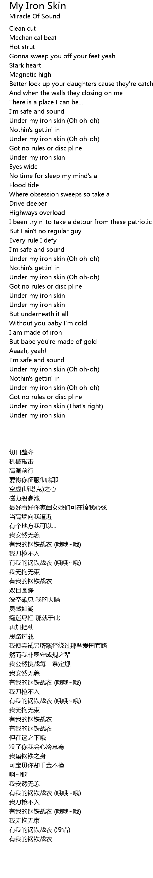 Under my iron skin (Oh oh-oh) |