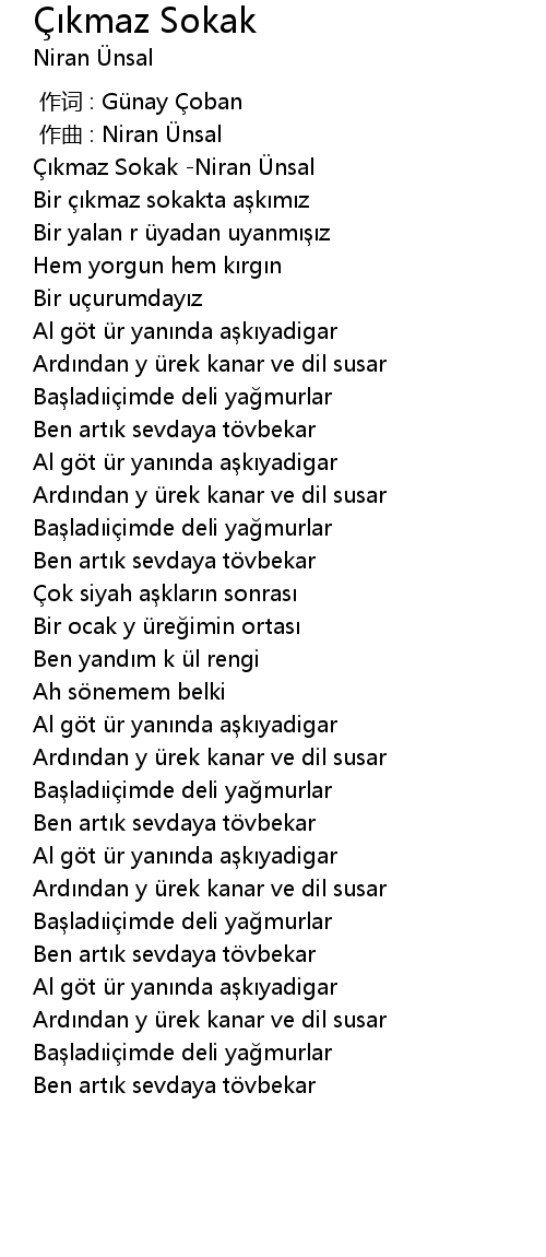 | [00:00.00] | Çıkmaz Sokak -Niran Ünsal |