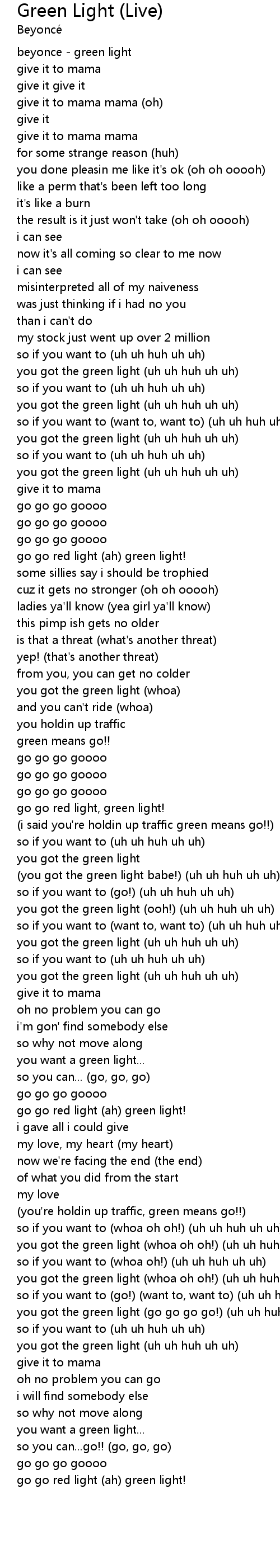 you got the green light (ooh!) (uh uh huh uh uh) |