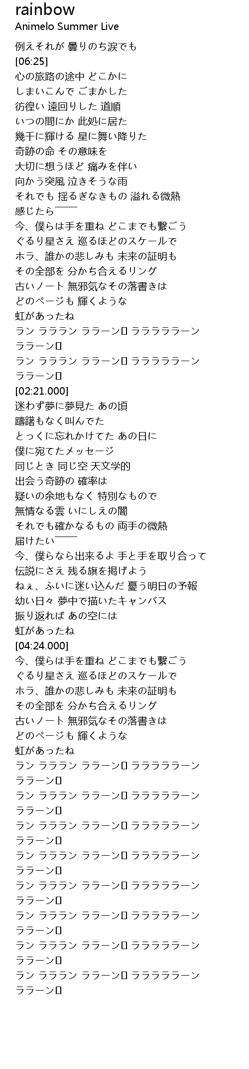 | [06:13.000] | ラン ラララン ララーン♪ ラララララーン ララーン♪ |