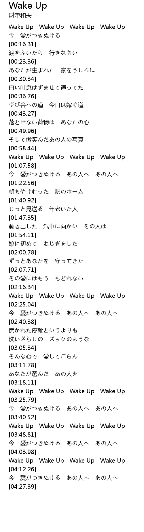 | [04:06.84] | Wake Up Wake Up Wake Up Wake Up |