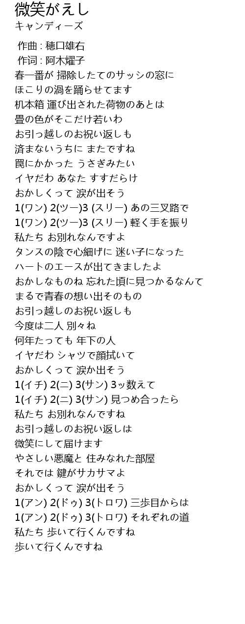 | [02:58.15] | 1(イチ) 2(ニ) 3(サン) 3ッ数えて |