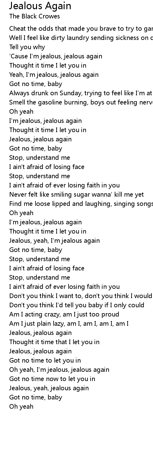Oh yeah, I'm jealous, jealous again |