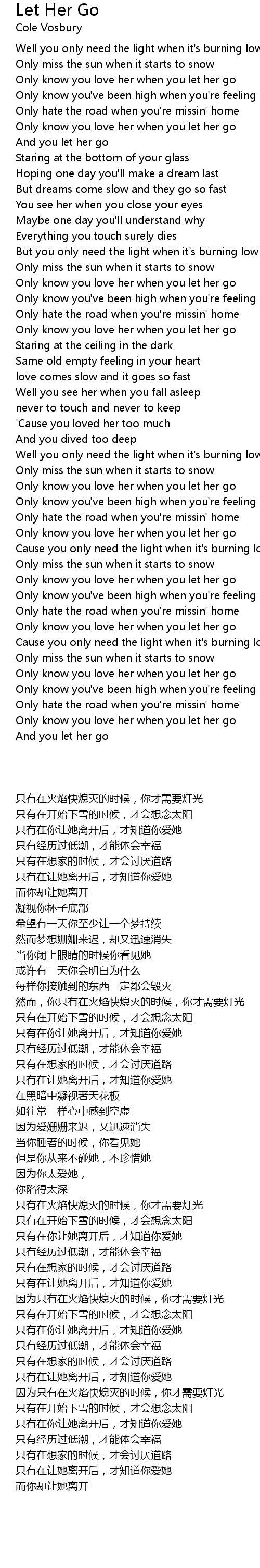Only know you love her when you let her go |