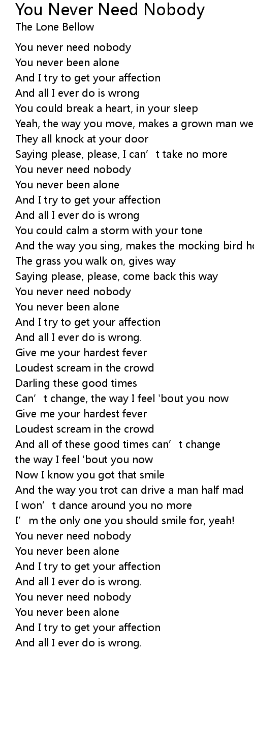 | You never need nobody | |