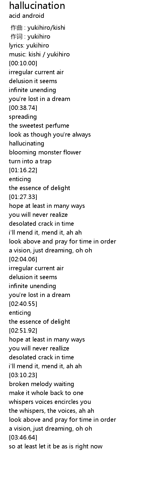 | [00:00.01] | lyrics: yukihiro |