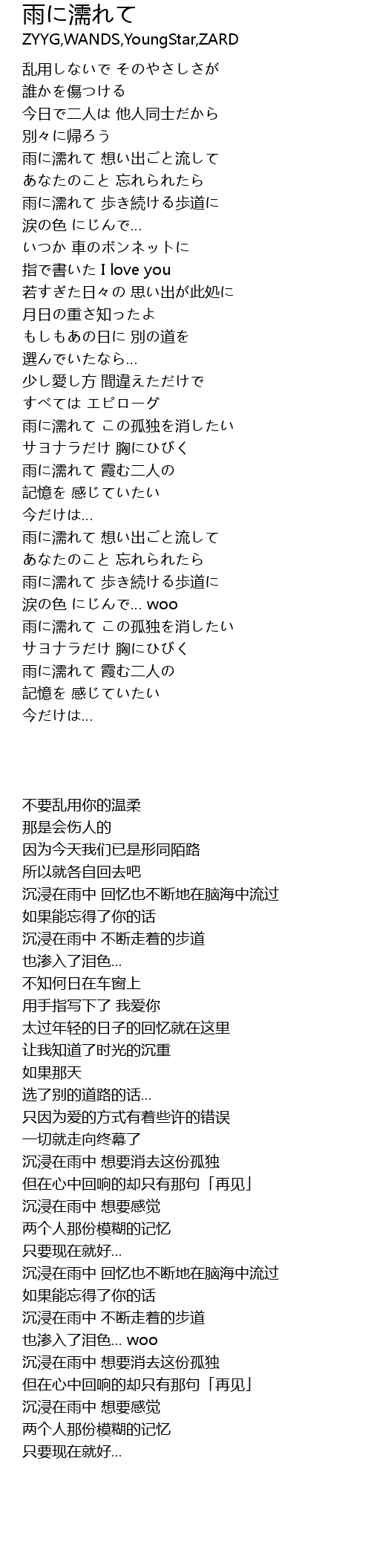 | [02:41.87] | 雨に濡れて 想い出ごと流して |
