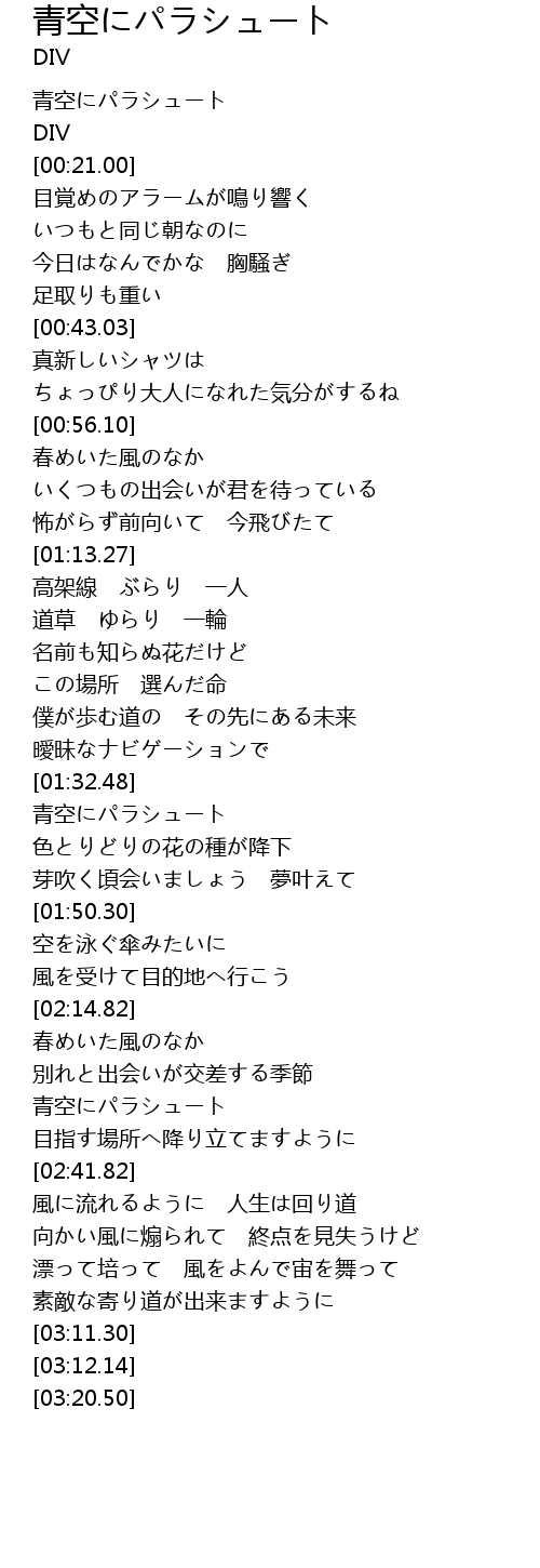| [01:33.47] | 青空にパラシュート |