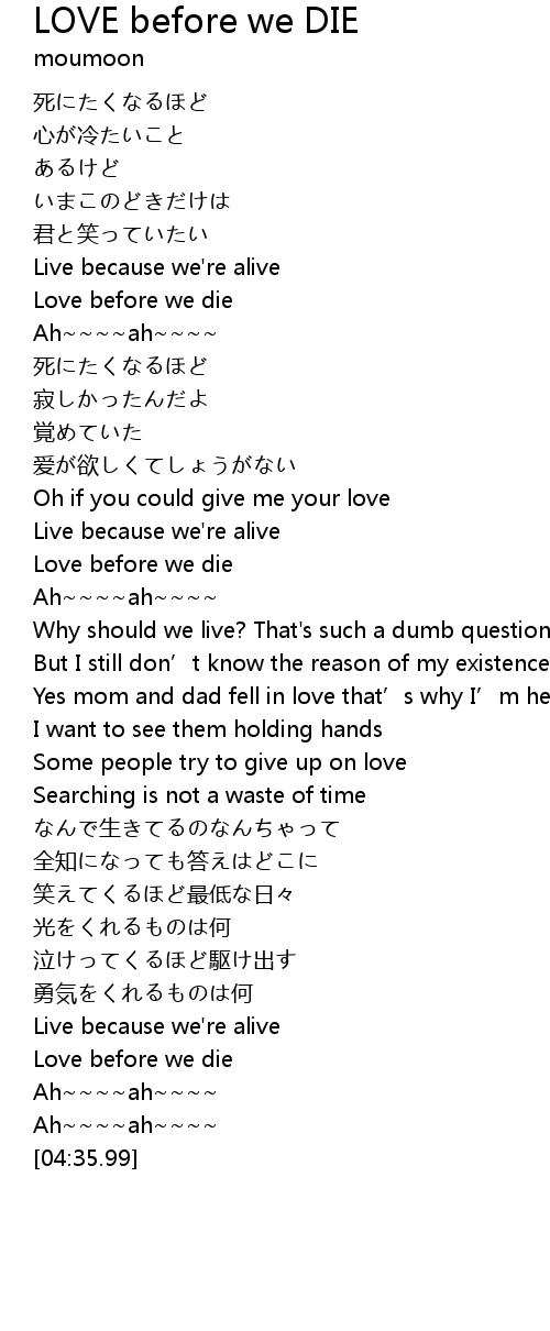 | [01:35.64] | Love before we die |